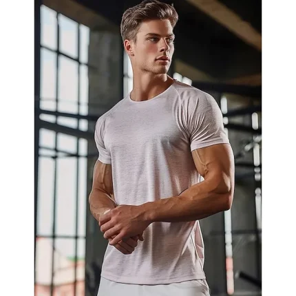 Men’s T shirt Tee Gym Shirt Sports T-Shirt Crew Neck Short Sleeve Sports & Outdoor Vacation Casual Daily Gym Quick dry Breathable Plain Pink Activewear Fashion Basic