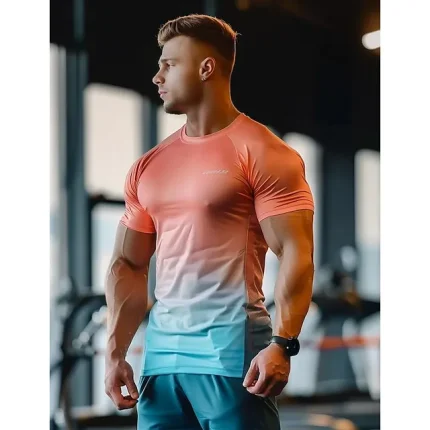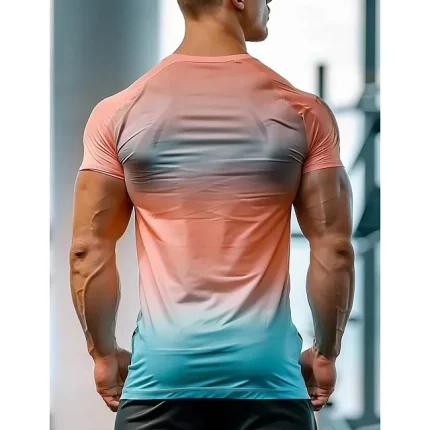 Men’s T shirt Tee Gym Shirt Sports T-Shirt Crew Neck Short Sleeve Sports & Outdoor Vacation Casual Daily Gym Quick dry Breathable Color Block Orange Activewear Fashion Basic