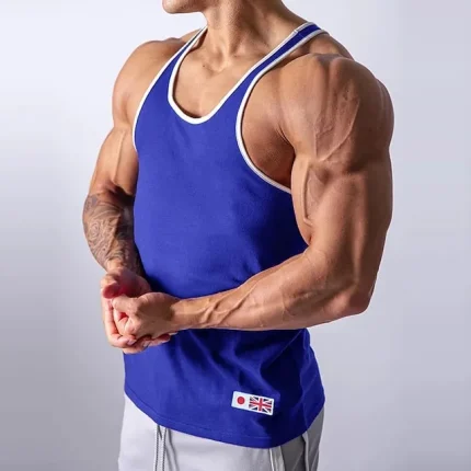 Men’s Running Tank Top Workout Tank Stripe-Trim Sleeveless Top Athletic Athleisure Cotton Breathable Soft Quick Dry Fitness Performance Active Training Sportswear Activewear Stripes Black White Blue