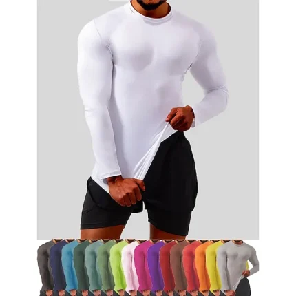 Men’s Workout Shirt Running Shirt Long Sleeve Top Street Casual Sun Protection Breathable Quick Dry Fitness Basketball Jogging Sportswear Activewear Solid Colored Navy Wine Red fluorescent green