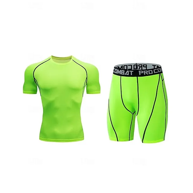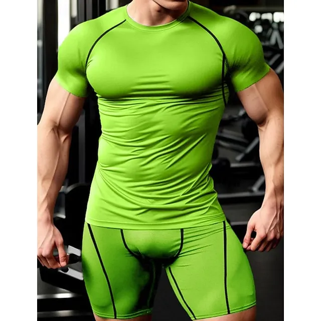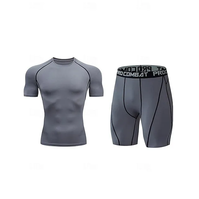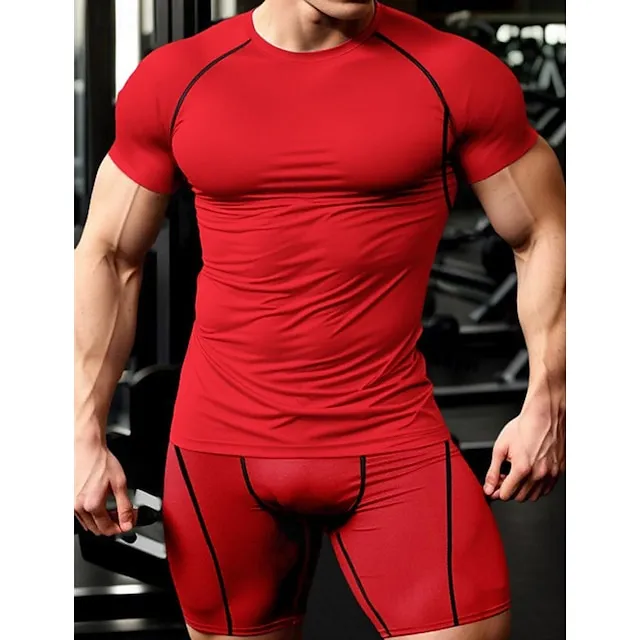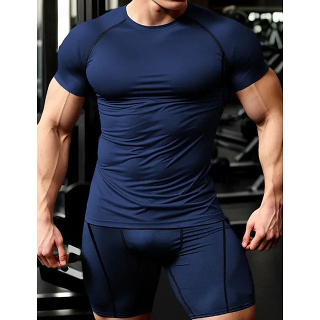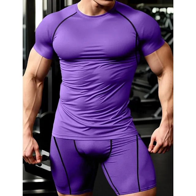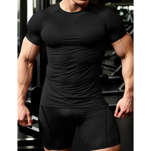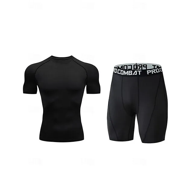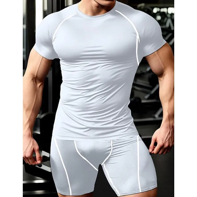 2 Pack/Set Men’s Compression Tops Shorts T Shirt Set Sports Tee Crew Neck Short Sleeve Outdoor Daily Running Gym Fast Dry Breathable Plain Black White Activewear Sport Top