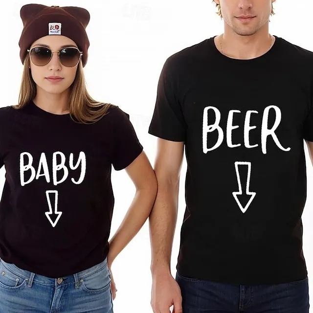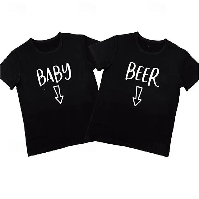 Couple Tshirt Letter Beer 2pcs Couple’s Men’s Women’s T shirt Tee Crew Neck Black Valentine’s Day Daily Short Sleeve Print Fashion Casual