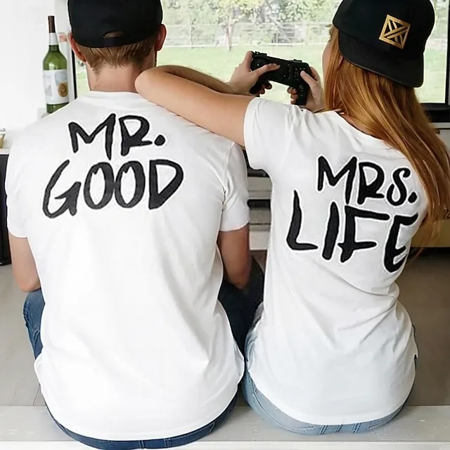 Couple Tshirt Letter Valentine’s Day 2pcs Couple’s Men’s Women’s T shirt Tee Crew Neck Beige Valentine’s Day Date Short Sleeve Print Fashion Casual