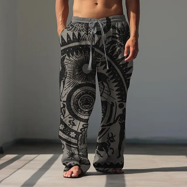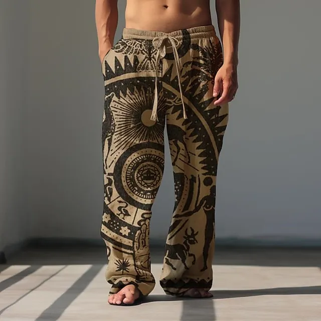 Ethnic Vintage Men‘s 3D Print Pants Trousers Outdoor Street Going out Polyester Brown Green Khaki S M L Mid Waist Elasticity Pants
