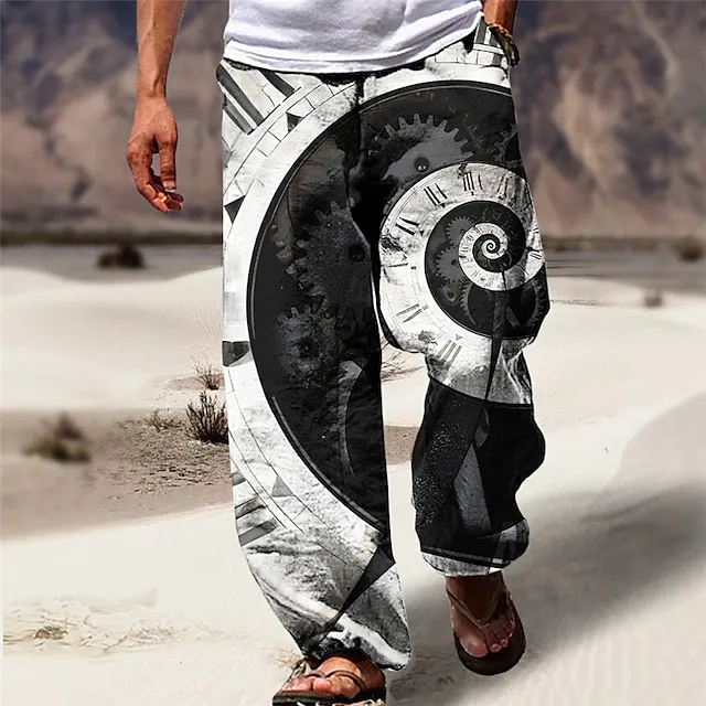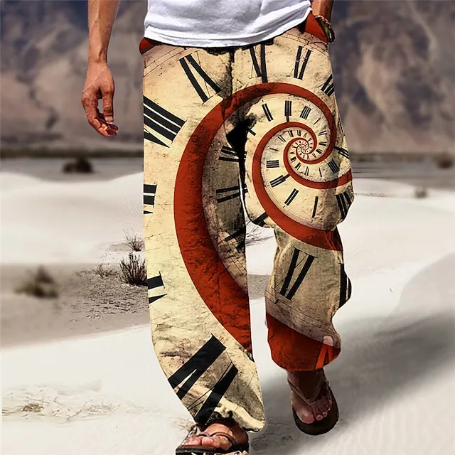 Machine Clock Casual Men’s 3D Print Pants Trousers Outdoor Street Going out Polyester Black Red Khaki S M L Mid Waist Elasticity Pants