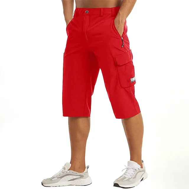 Men’s Cargo Shorts Workout Shorts Capri Pants Hiking Shorts Going out Weekend Breathable Quick Dry Button Multiple Pockets Straight Leg Plain Knee Length Gymnatics Activewear Black Red