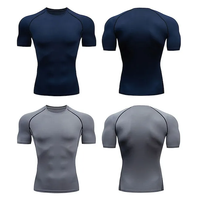 Men’s Compression Shirt Running Shirt Short Sleeve Tee Tshirt Athletic Breathable Quick Dry Moisture Wicking Gym Workout Running Active Training Sportswear Activewear Striped Violet Black White
