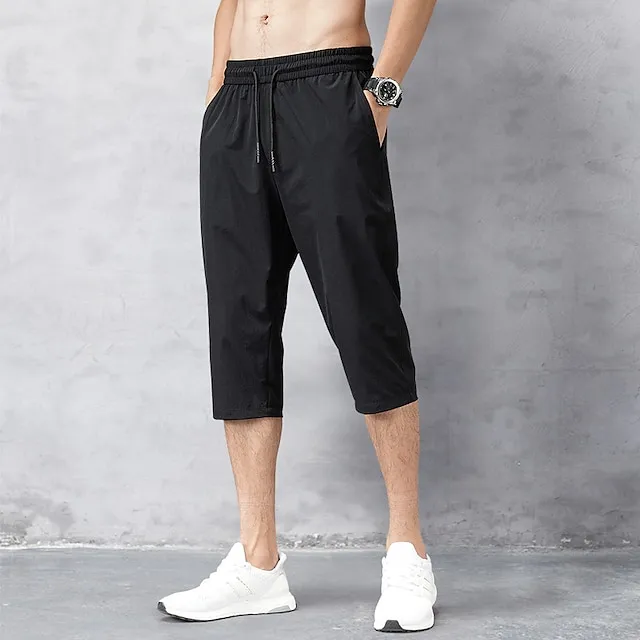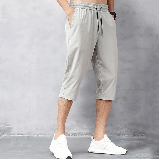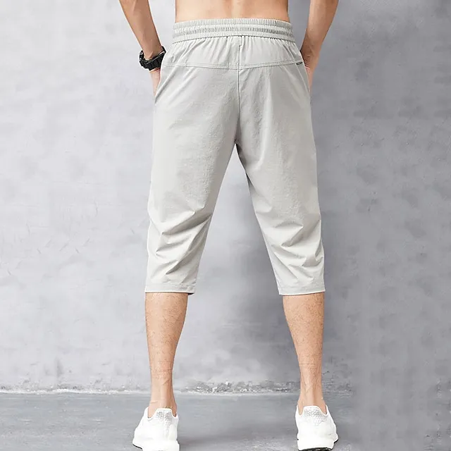 Men’s Cropped Pants Capri Pants Pocket Drawstring Elastic Waist Plain Comfort Sports Daily Leisure Sports Holiday Stylish Classic Style Black Light Grey