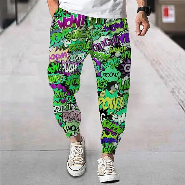 Men’s Joggers Trousers Summer Pants Beach Pants Drawstring Elastic Waist Letter Graphic Prints Comfort Breathable Sports Outdoor Casual Daily Streetwear Designer Purple Green Micro-elastic