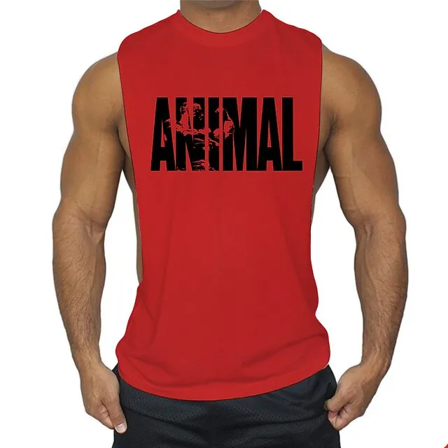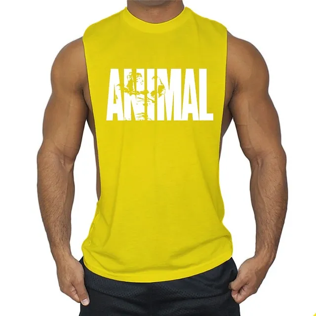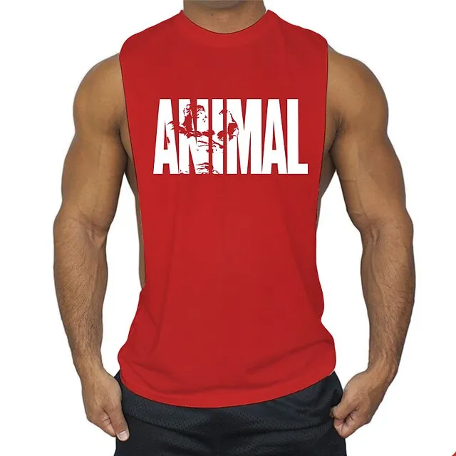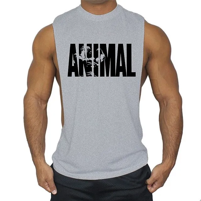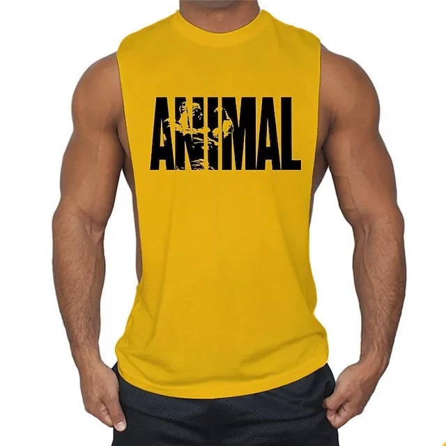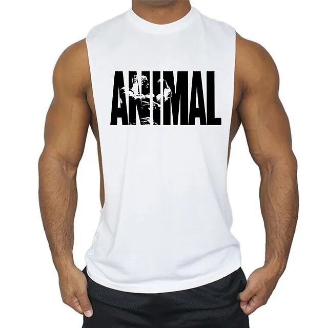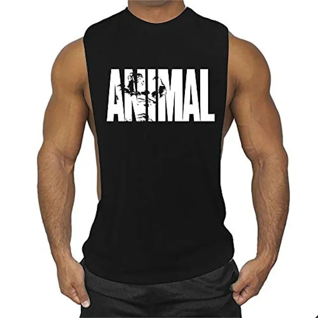 men’s man animal bodybuilding tops tank shirt vintage print t-shirt vest muscle shirt print 85% cotton 15% elastane, black , m