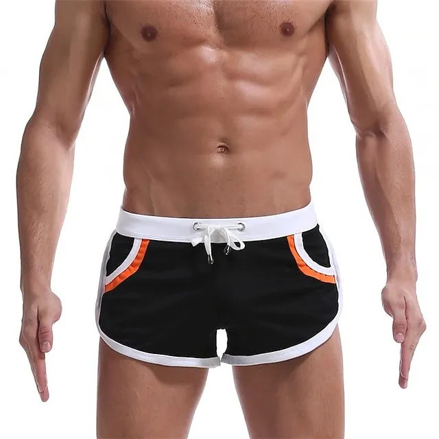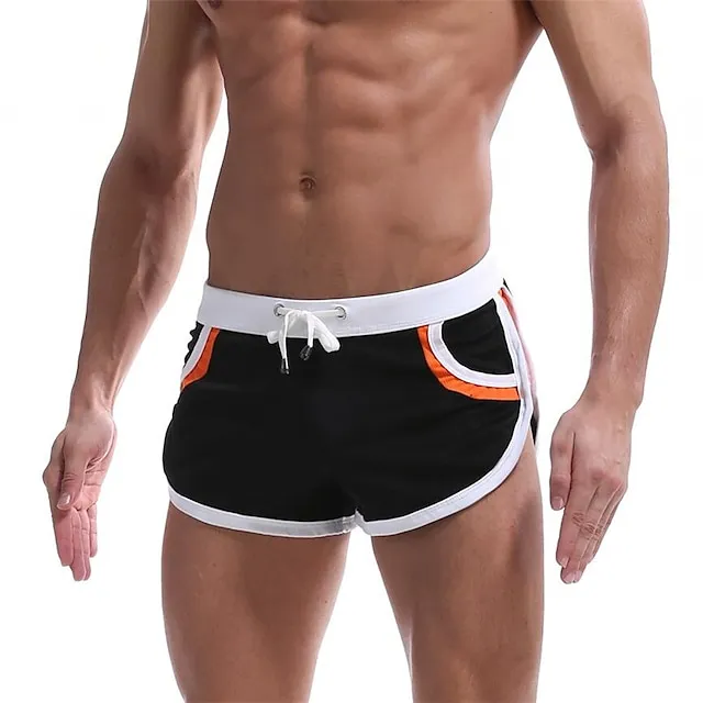 Men’s Running Shorts Athletic Shorts Drawstring Stripe-Trim Bottoms Athletic Athleisure Breathable Soft Quick Dry Fitness Gym Workout Marathon Sportswear Activewear Stripes Black / Orange Black White