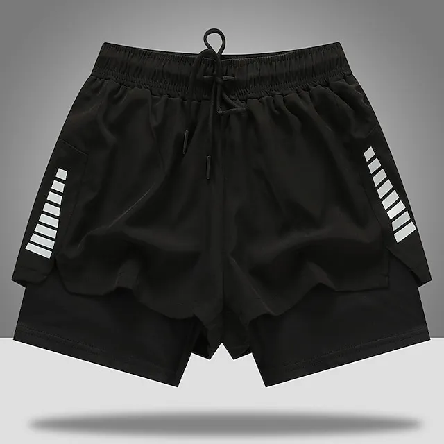 Men’s Running Shorts Gym Shorts Sports Basketball Gym Breathable Quick Dry Drawstring Elastic Waist Liner Plain Short Sport Casual Activewear Black Grey Micro-elastic