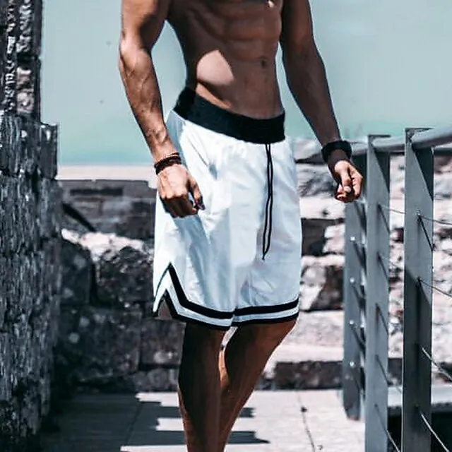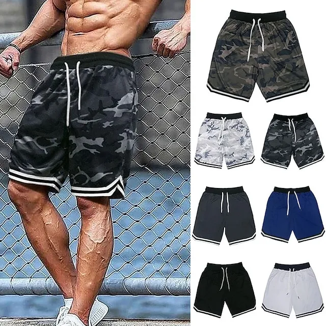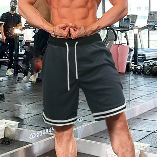 Men’s Running Shorts Workout Shorts Mesh Drawstring Bottoms Athletic Casual Cotton Breathable Moisture Wicking Soft Gym Workout Basketball Running Sportswear Activewear Stripes Black White Army Green