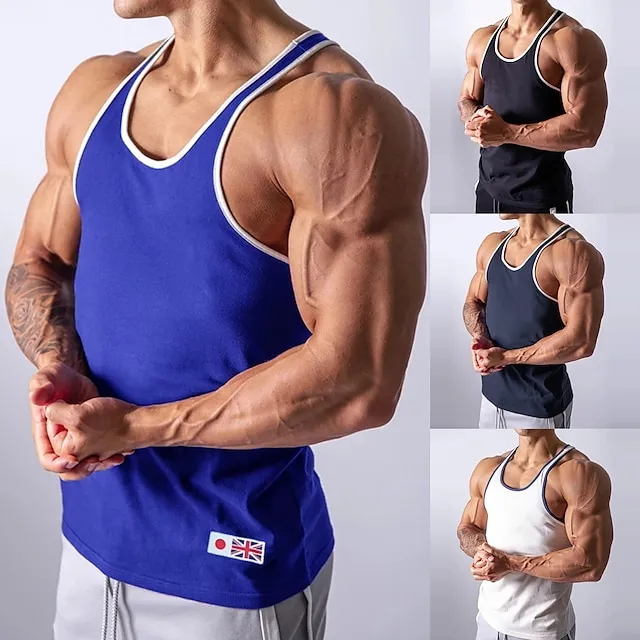 Men’s Running Tank Top Workout Tank Stripe-Trim Sleeveless Top Athletic Athleisure Cotton Breathable Soft Quick Dry Fitness Performance Active Training Sportswear Activewear Stripes Black White Blue