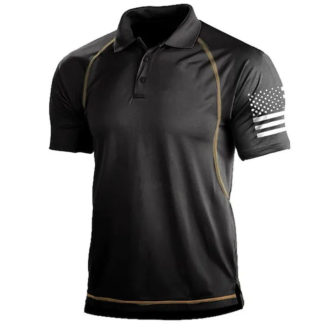Men’s Tactical Shirt Performance Polo Performance Shirt Hiking Shirt Lapel Short Sleeve Sports & Outdoor Vacation Going out Casual Daily Quick dry Breathable Soft Plain Black White Activewear Fashion