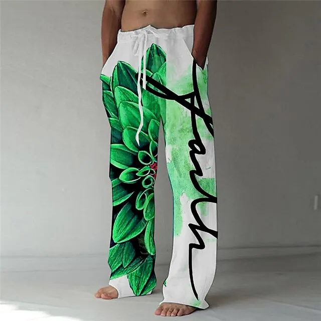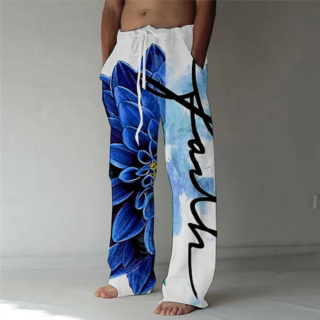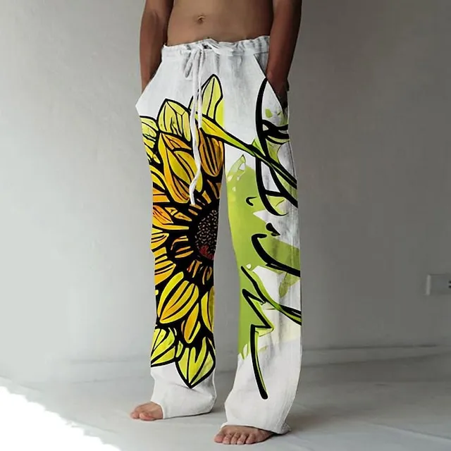 Men’s Trousers Summer Pants Beach Pants Elastic Drawstring Design Front Pocket Straight Leg Graphic Prints Flower / Floral Comfort Soft Casual Daily For Vacation Linen Like Fabric Fashion Designer