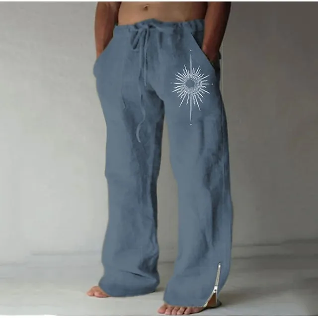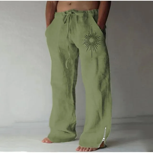 Sun Vintage Men’s 3D Print Pants Trousers Outdoor Street Going out Polyester White Blue Green S M L Mid Waist Elasticity Pants
