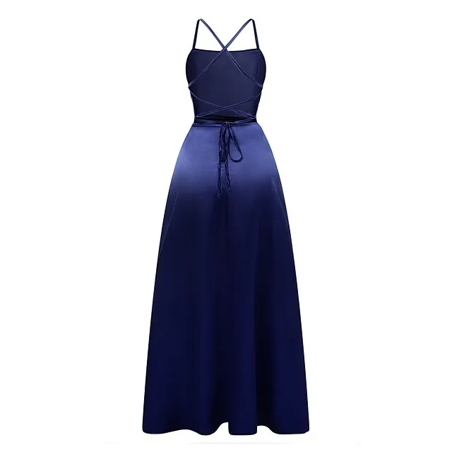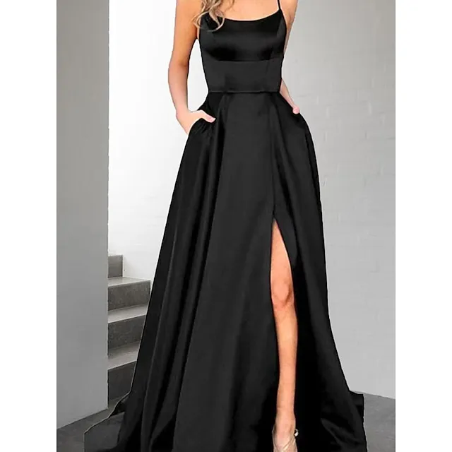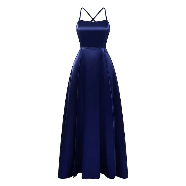 Women‘s Black Dress Prom Dress Black Satin Dress Prom Party Dress Swing Dress Long Dress Maxi Dress Blue Dark Green Backless Fall Spring Spaghetti Romantic Winter Dress Daily Evening Party