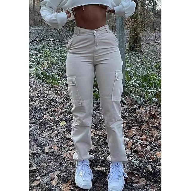 Women’s Cargo Pants Pants Trousers Cotton Blend Plain Full Length Micro-elastic Mid Waist Fashion Casual Weekend Black Beige S M Summer Spring & Fall