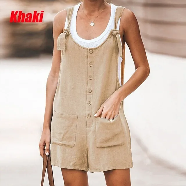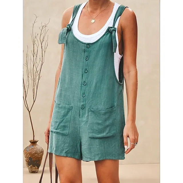 Women’s Fashion Streetwear Overalls Short Pants Daily Weekend Inelastic Plain Linen / Cotton Blend Breathable Soft Mid Waist Loose Green Black Army Green Fuchsia Khaki S M L XL XXL