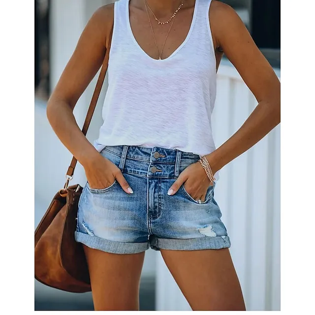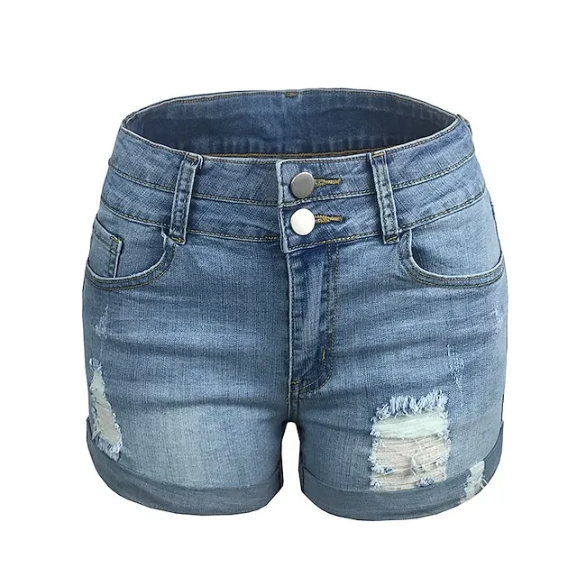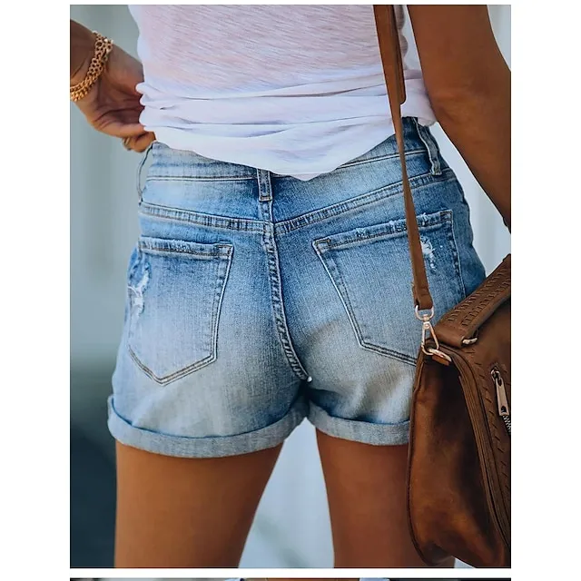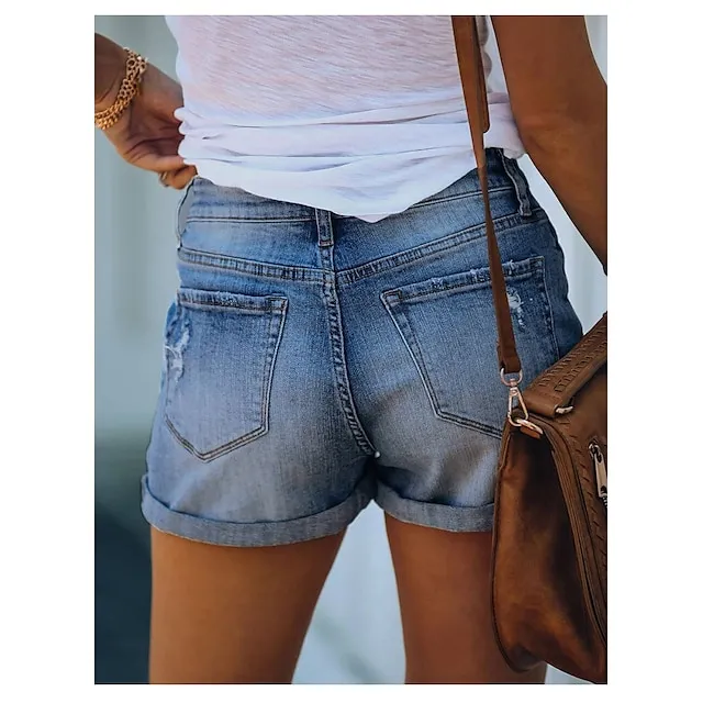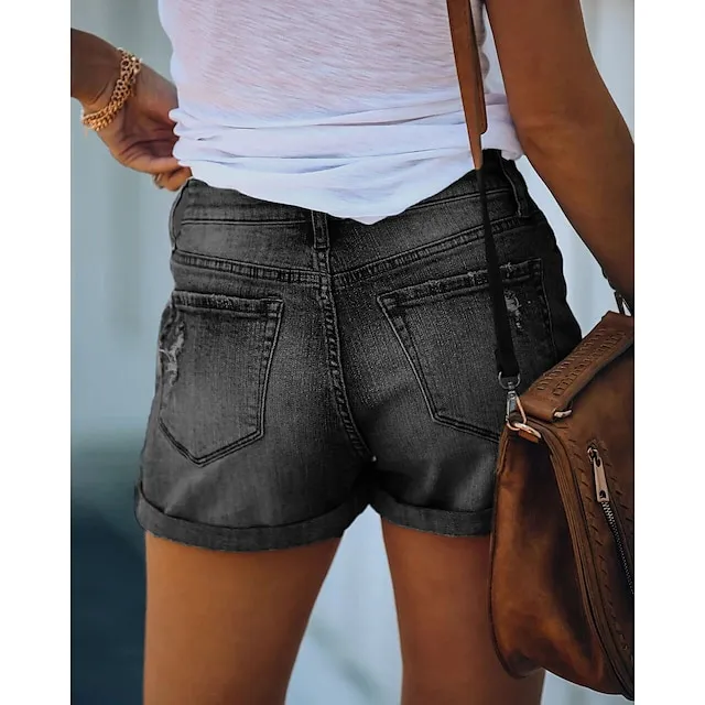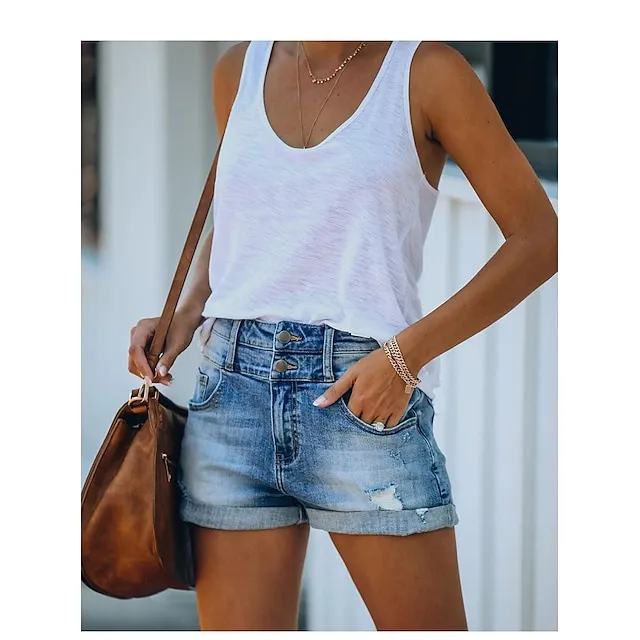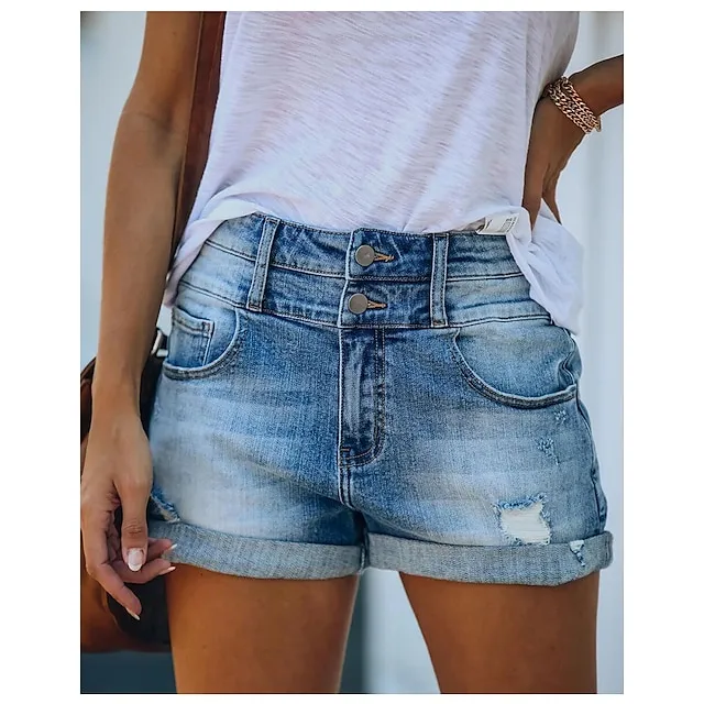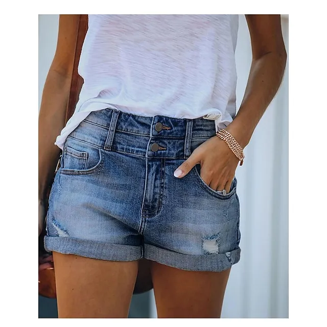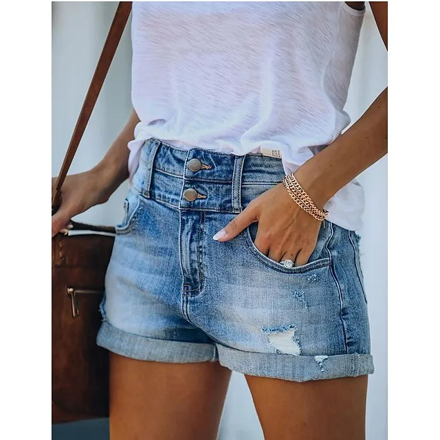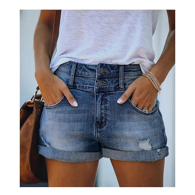 – Versatile denim shorts for women that can be paired with a range of tops including turtleneck sweaters, T-shirts, and vests.