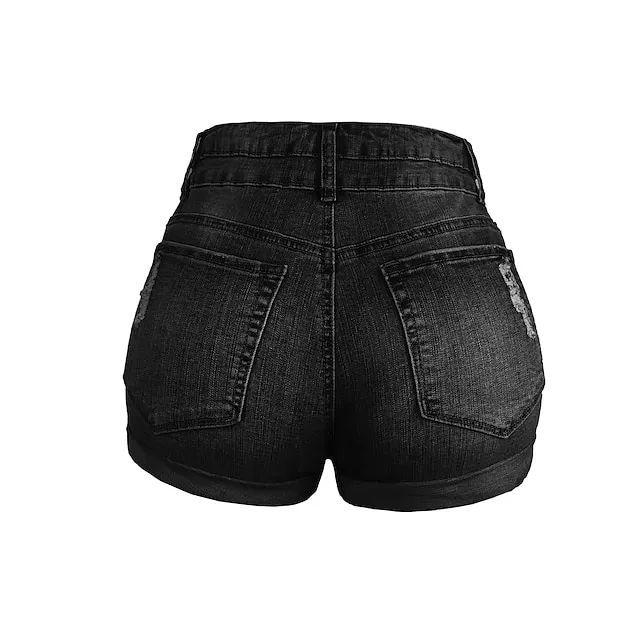 Women’s Jeans Shorts Denim Plain Baggy Short Micro-elastic Mid Waist Fashion Office Casual Black Blue S M Summer Spring & Fall