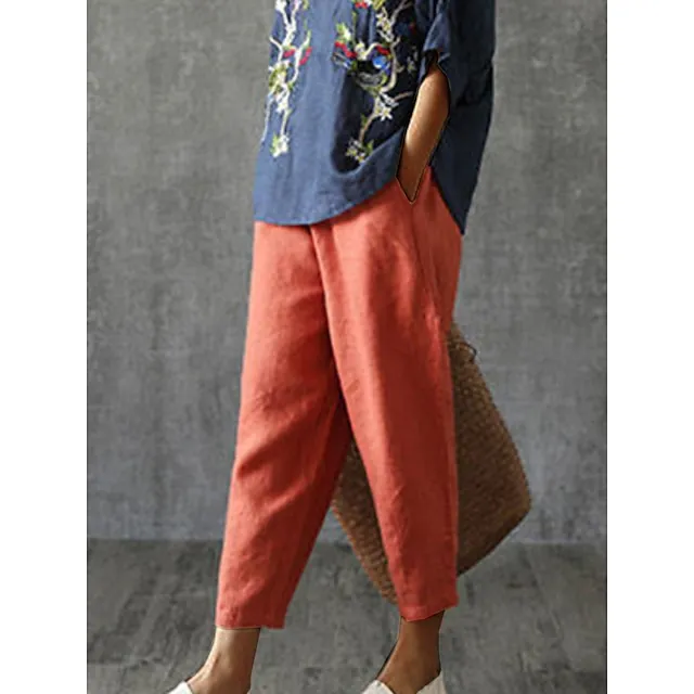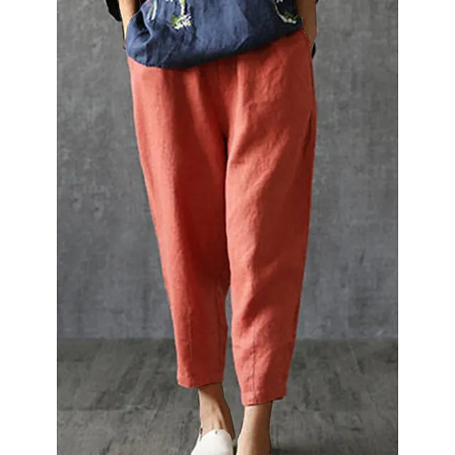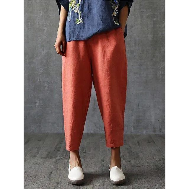 Women’s Linen Pants Pants Trousers Baggy Linen Cotton Blend Plain Pocket Baggy Full Length Micro-elastic Mid Waist Fashion Streetwear Daily Daily Wear Orange red Black M L Summer Spring