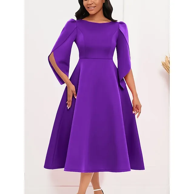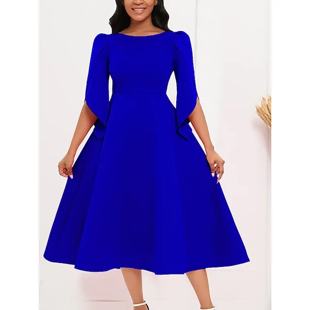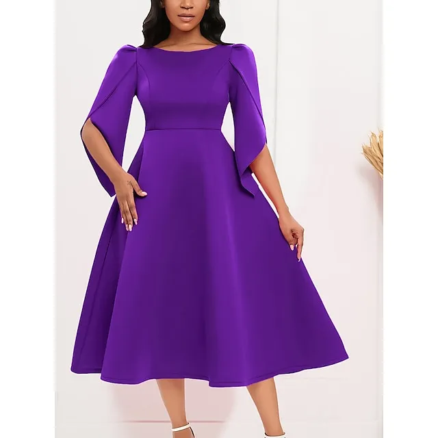 Women’s Prom Dress Party Dress Sheath Dress Midi Dress Royal Blue Purple Green Half Sleeve Pure Color Ruched Fall Winter Autumn Crew Neck Fashion Evening Party Vacation S M L XL XXL 3XL