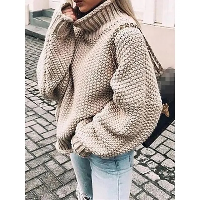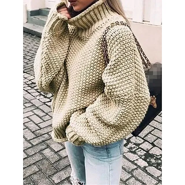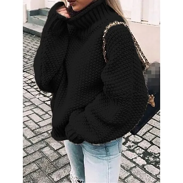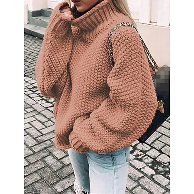 Women’s Pullover Sweater Jumper Turtleneck Ribbed Knit Polyester Oversized Fall Winter Regular Daily Going out Weekend Stylish Casual Soft Long Sleeve Solid Color Black Pink Green S M L