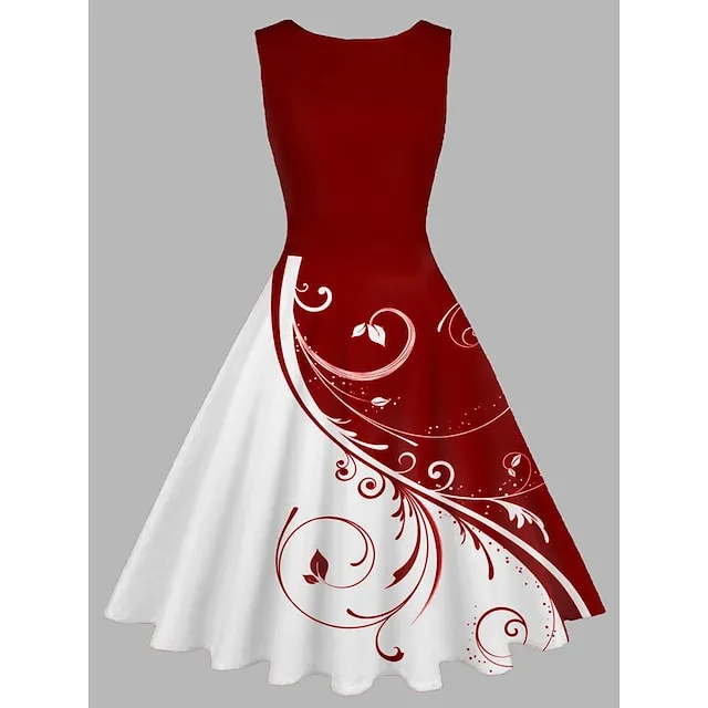 Women’s Retro 1950s Vintage Tea Dresses Midi Dress Daily Date Ruched Print Floral Crew Neck Sleeveless Slim Summer Spring Black Wine S M L XL