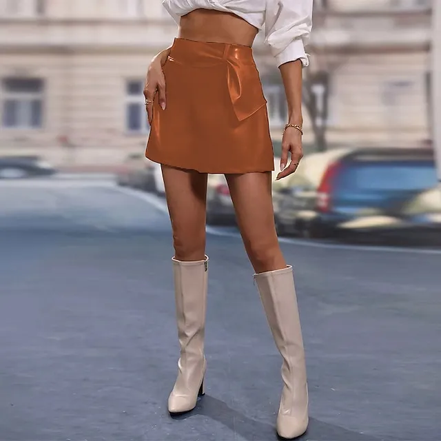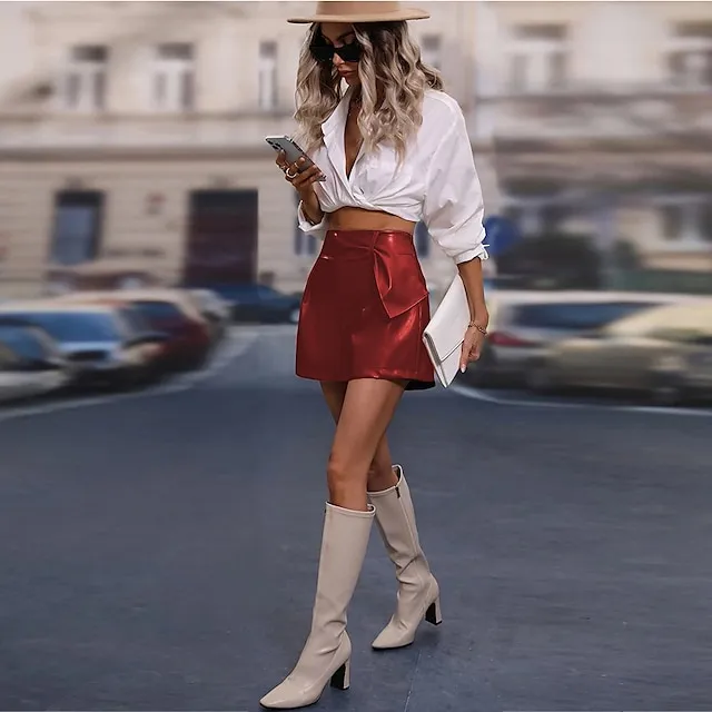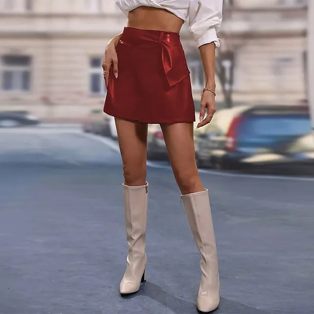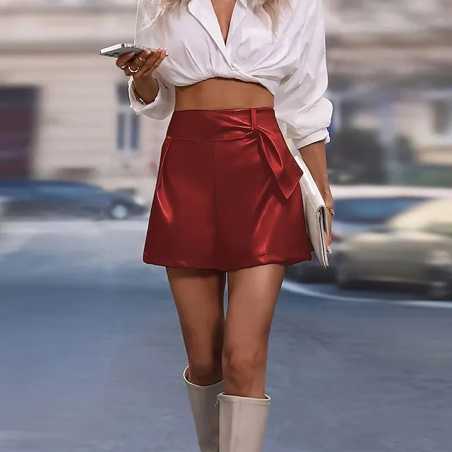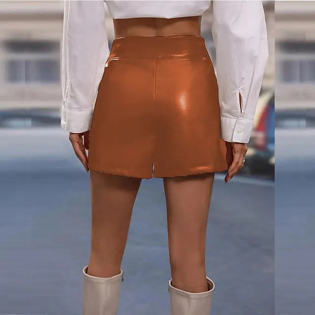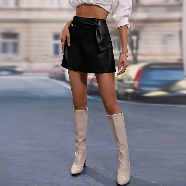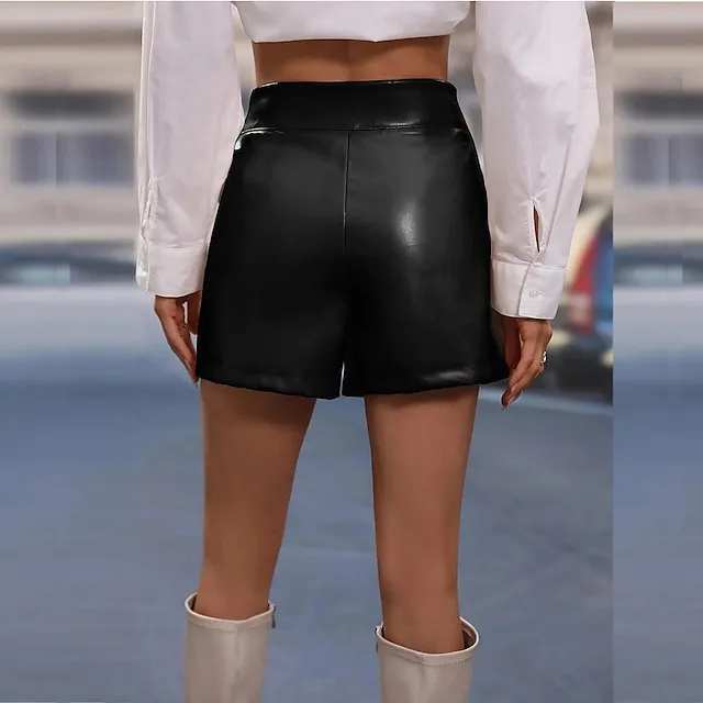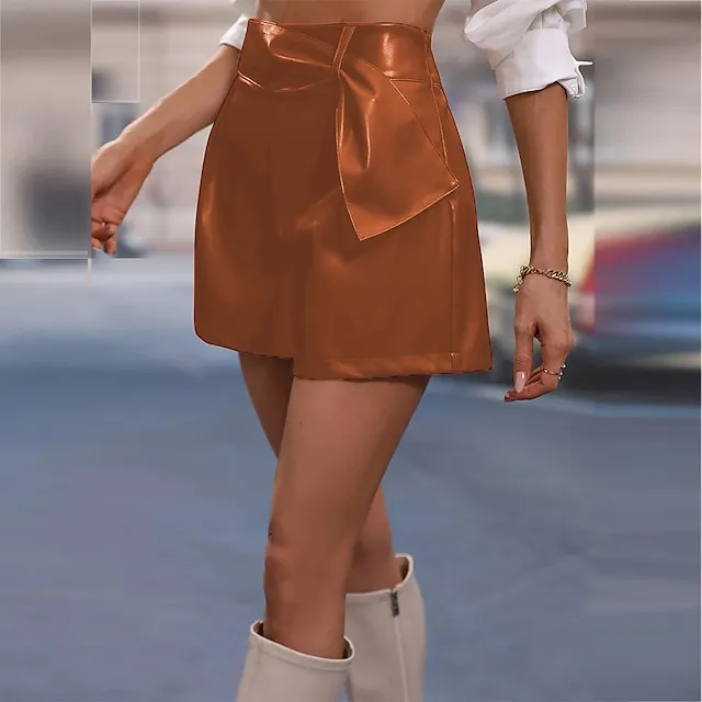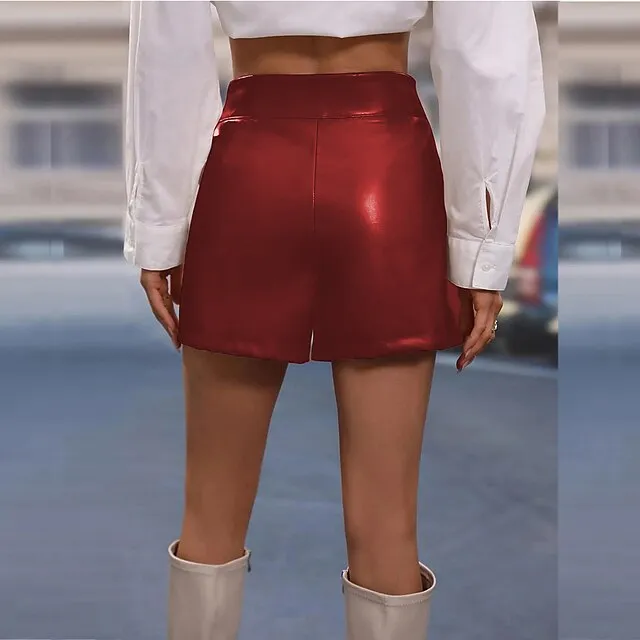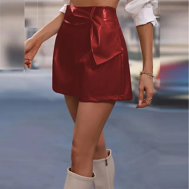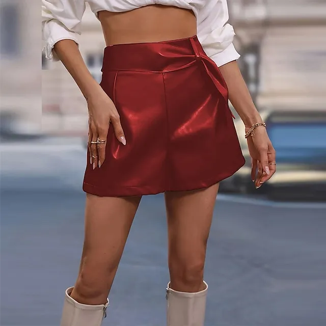 Women’s Shorts Baggy Shorts Faux Leather Wide Leg Short Micro-elastic Medium Waist Sexy Party Casual claret Black S M Summer