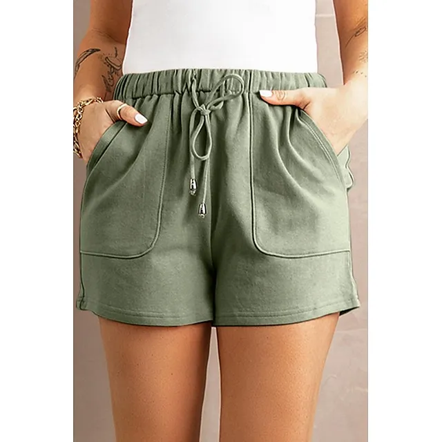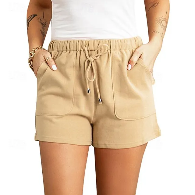 Women’s Shorts Cotton Blend Plain Side Pockets Short Casual Daily Going out Weekend Black Blue S M Summer
