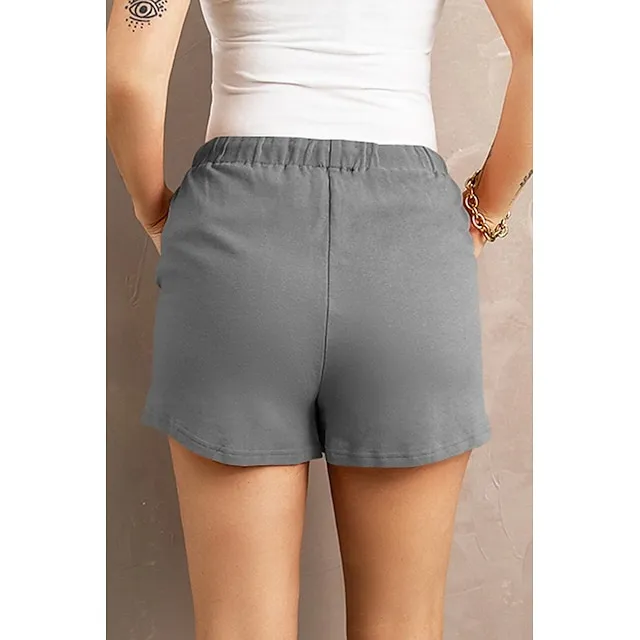 Women’s Shorts Slacks Cotton Plain Pocket Knee Length Micro-elastic High Waist Active Simple Vacation Casual Daily Dark Gray Wine S M Summer Spring