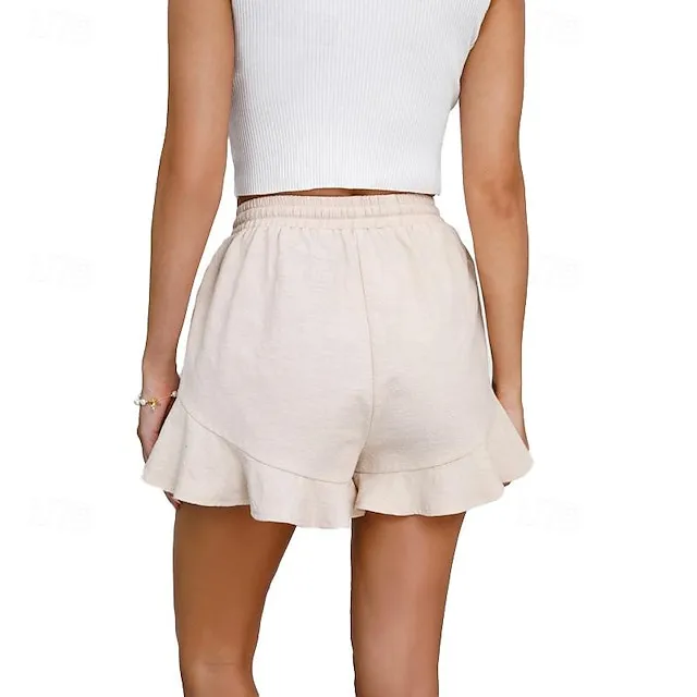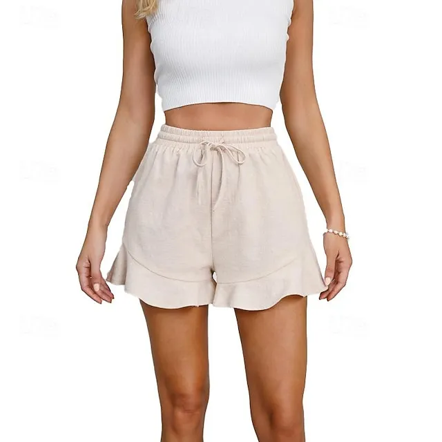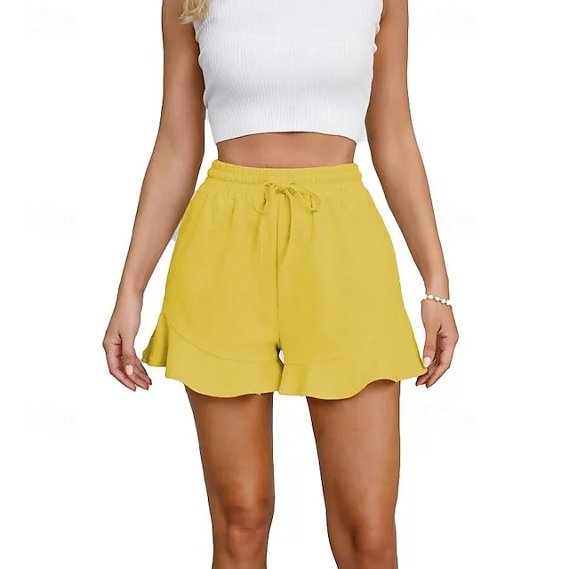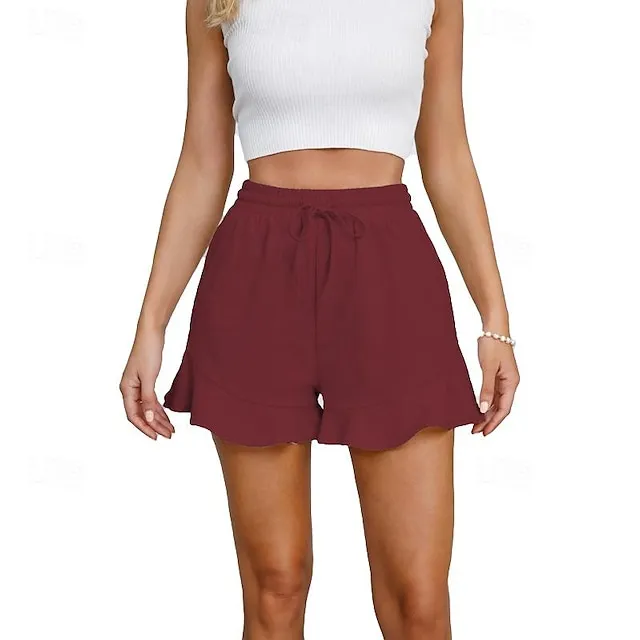 Women’s Shorts Cotton Plain Ruffle Short Casual Daily Going out Weekend Wine Black S M Spring & Summer