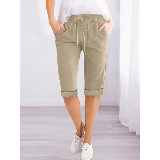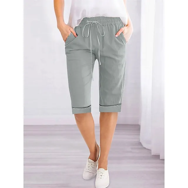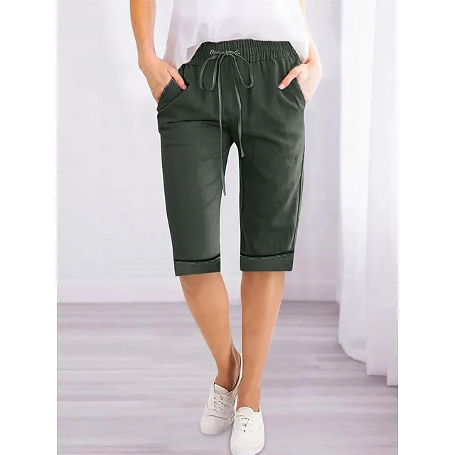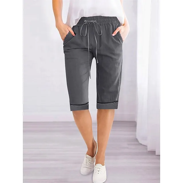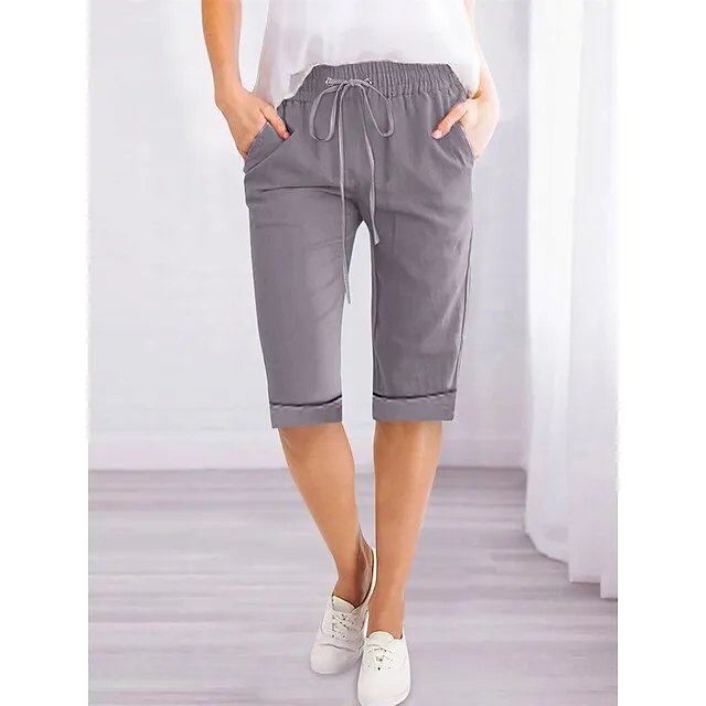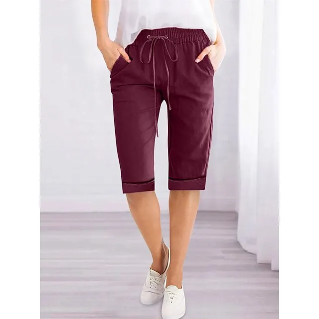 Women’s Shorts Slacks Cotton Plain Pocket Knee Length Micro-elastic High Waist Active Simple Vacation Casual Daily Dark Gray Wine S M Summer Spring