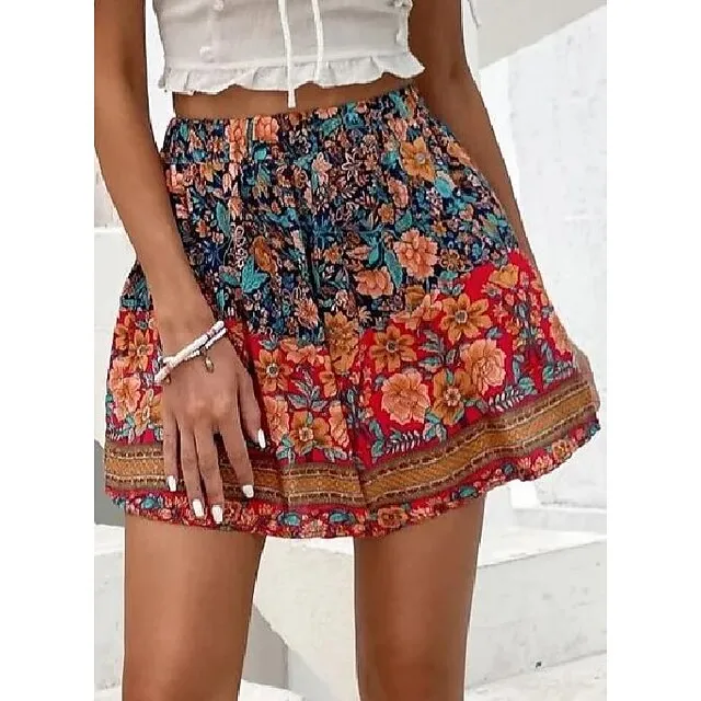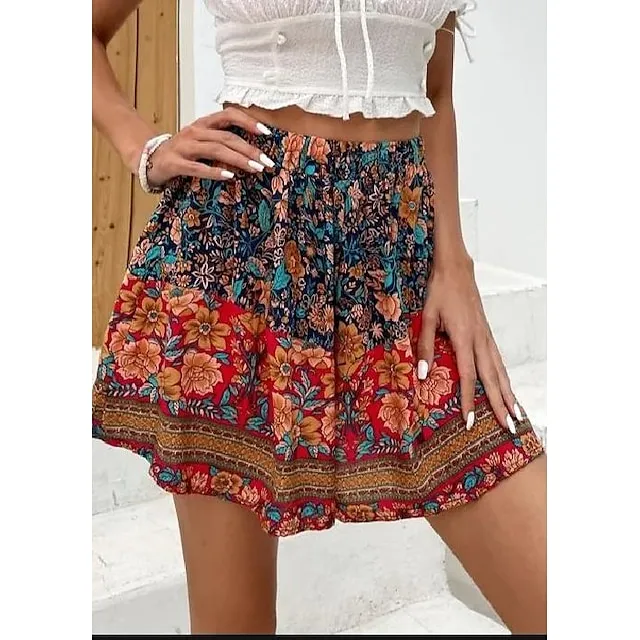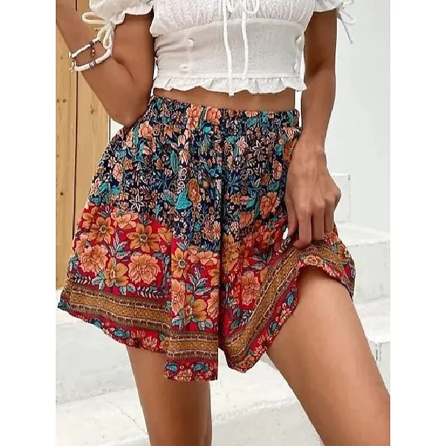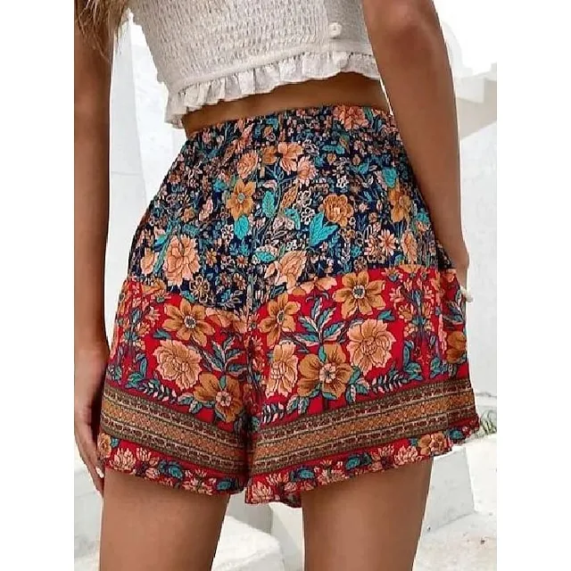 Women’s Shorts Swing Floral Print Short Micro-elastic Vacation Holiday Weekend Red S M