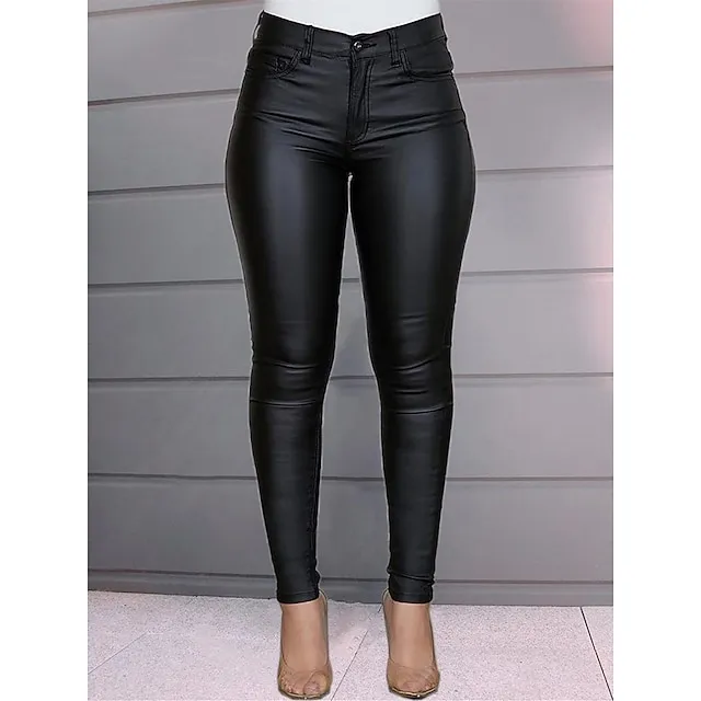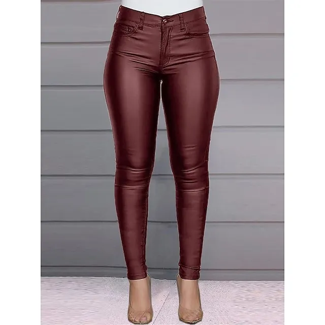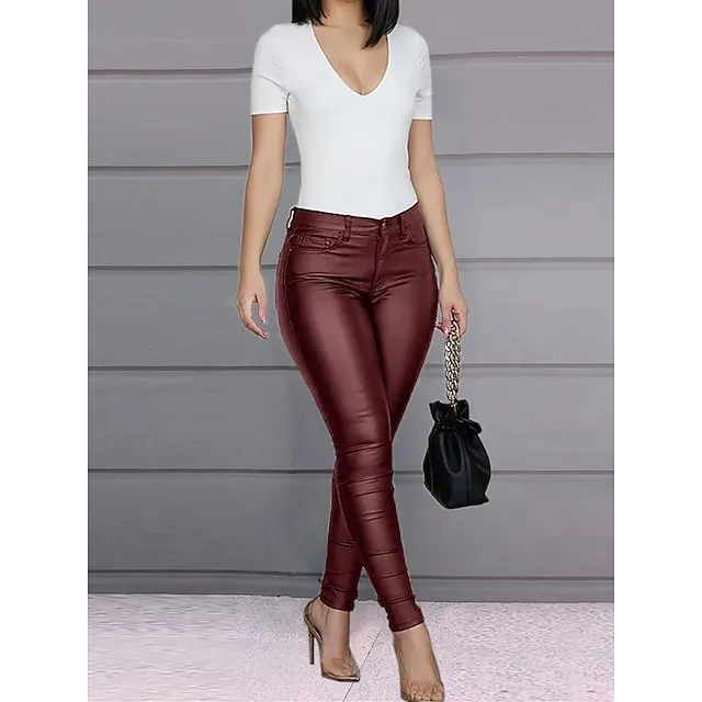 Women’s Slim Pants Trousers Plain Full Length Micro-elastic Mid Waist Fashion Streetwear Party Outdoor Black Wine S M Fall Winter