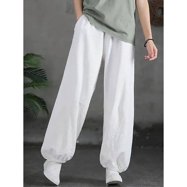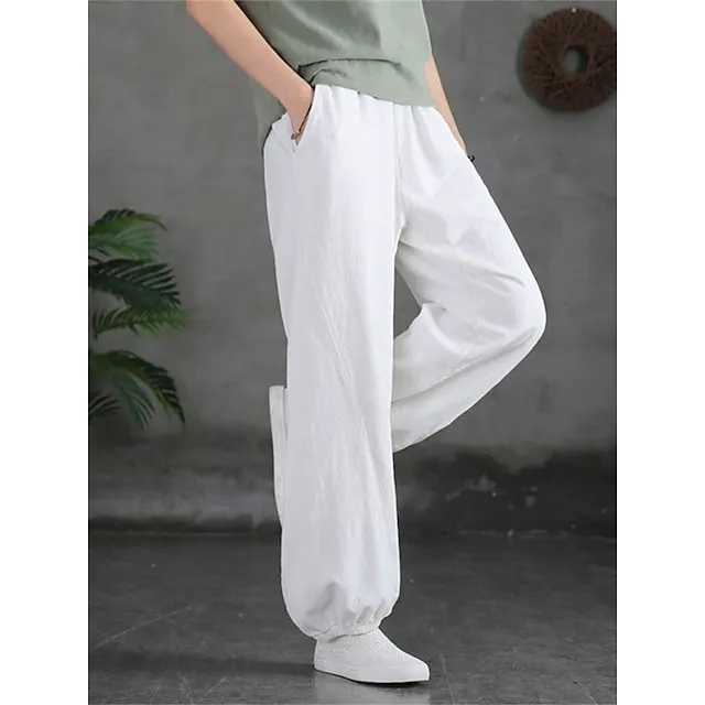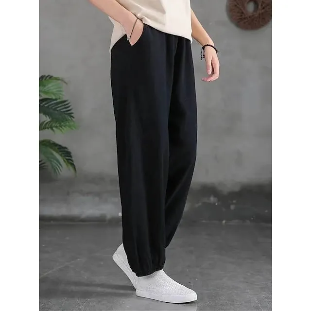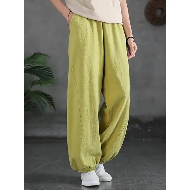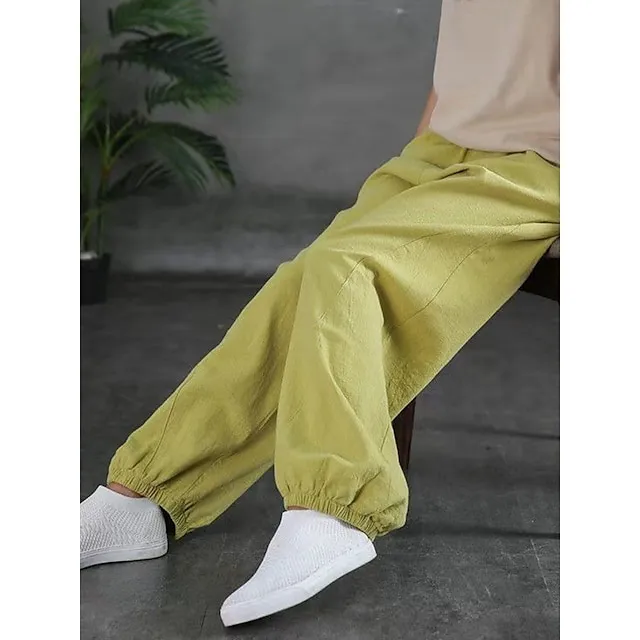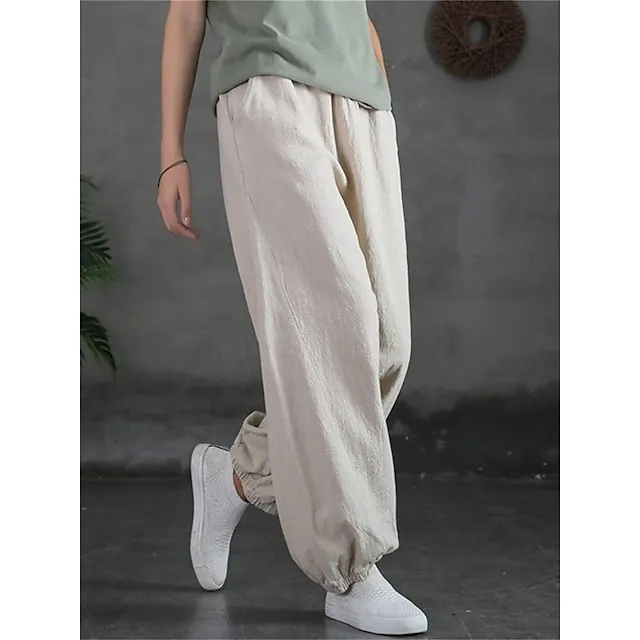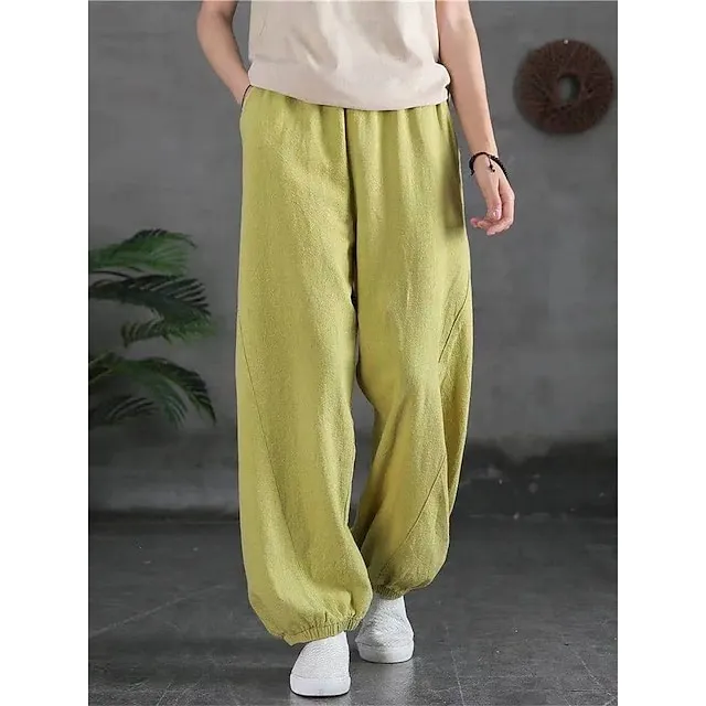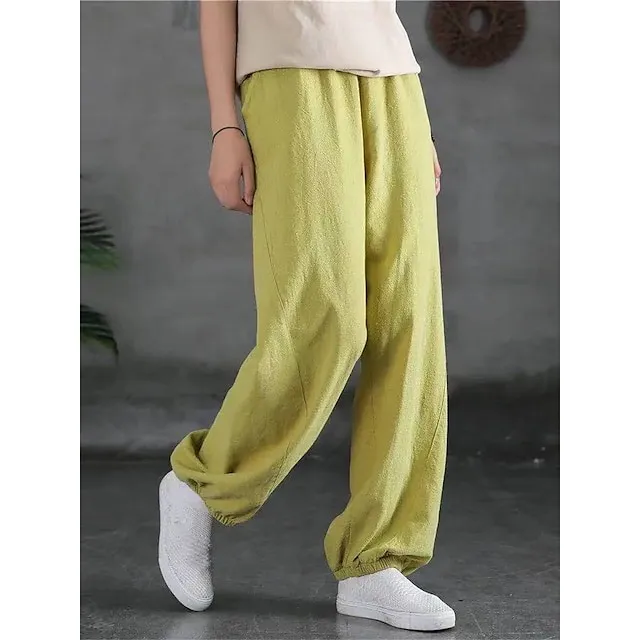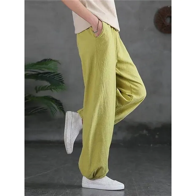 Women’s Sweatpants Linen Pants Pants Trousers Linen Cotton Blend Plain Full Length Micro-elastic High Waist Vacation Vintage Street Daily Light Yellow Black M L Fall Winter