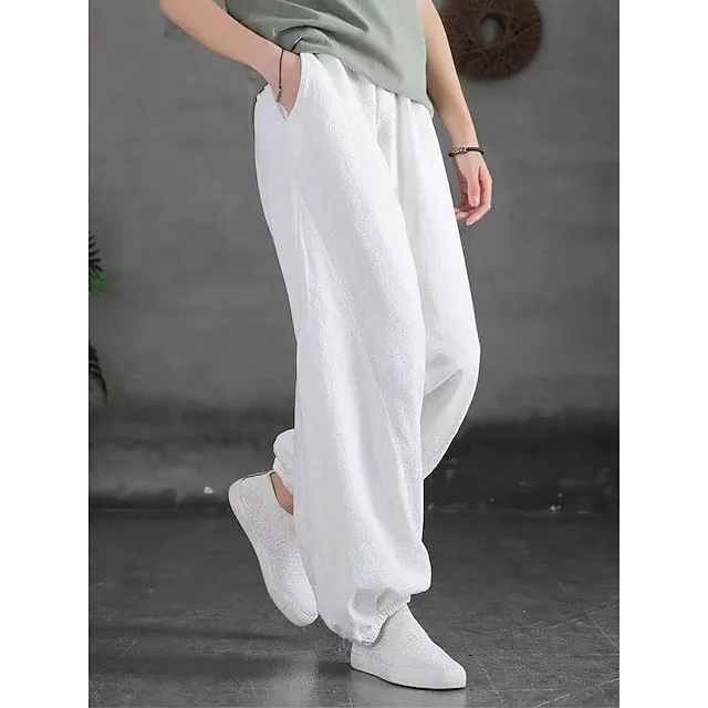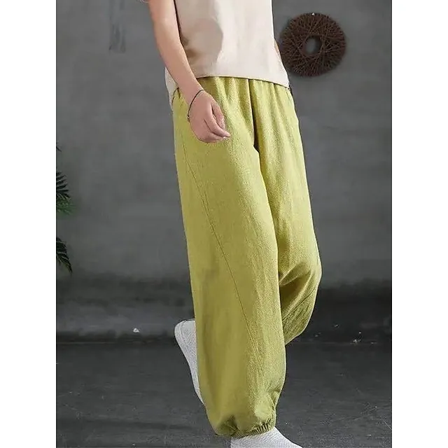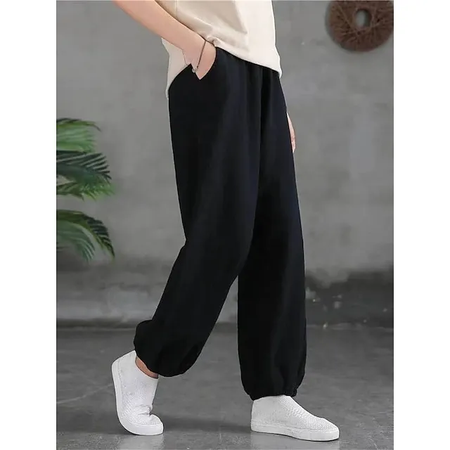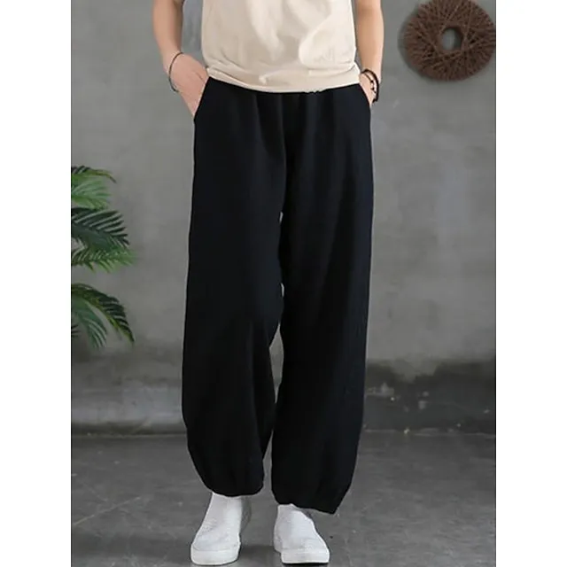Women’s Bloomers Cropped Pants Harem Pants Cotton And Linen Plain Pocket High Cut Ankle-Length Micro-elastic High Waist Vacation Streetwear Outdoor Street Wine Black S M Winter Autumn / Fall