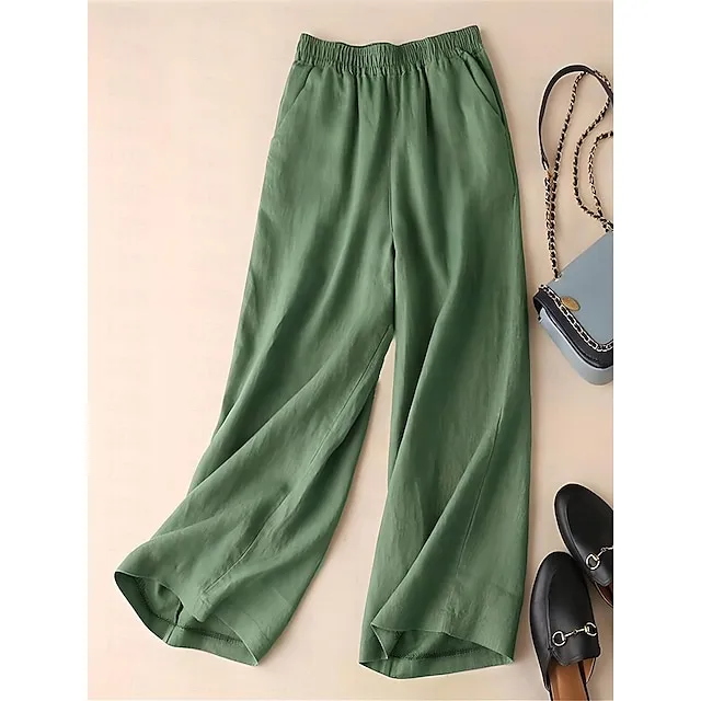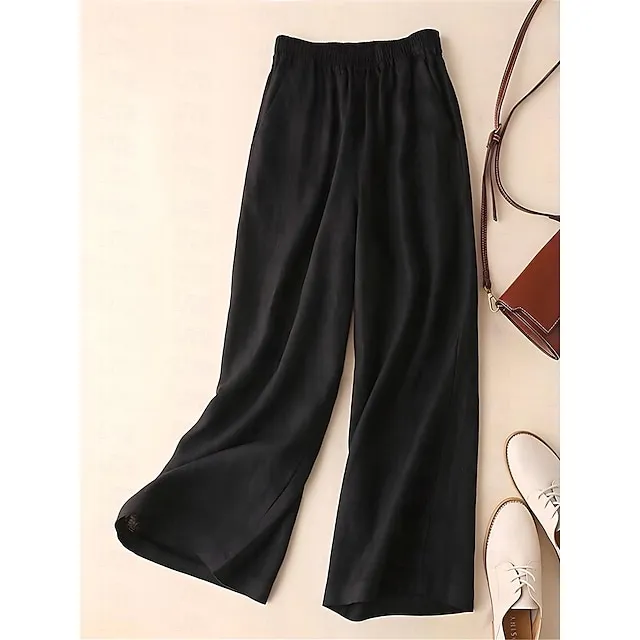 Women’s Wide Leg Pants Casual Maillard Chinos Baggy Ankle-Length Cotton And Linen Pocket Micro-elastic High Waist Fashion Streetwear Daily Wear Black White M L Summer Fall
