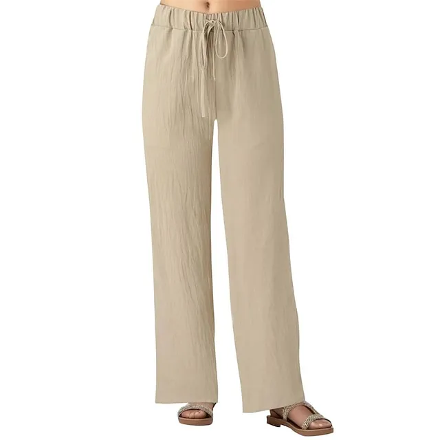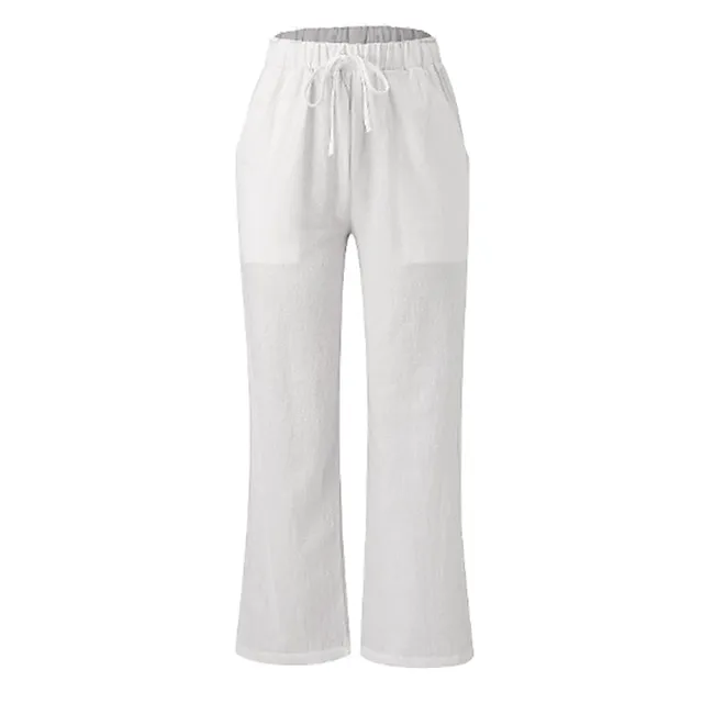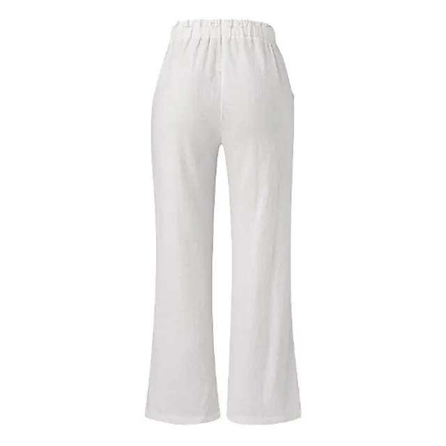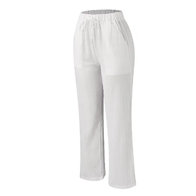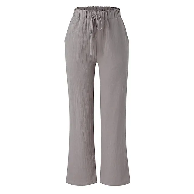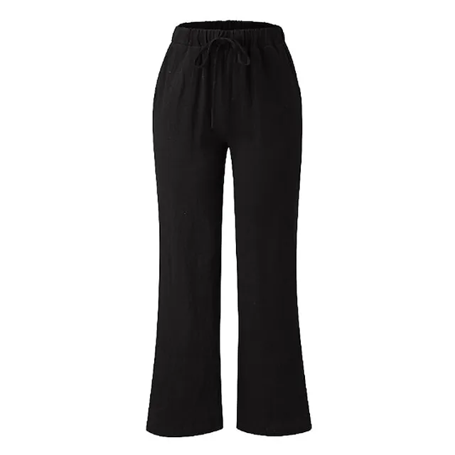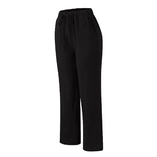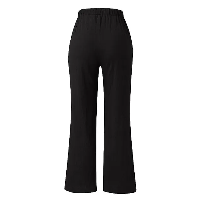 Women’s Wide Leg Pants Trousers Linen Cotton Blend Plain Full Length Micro-elastic Mid Waist Fashion Streetwear Street Daily Black White S M Fall Winter